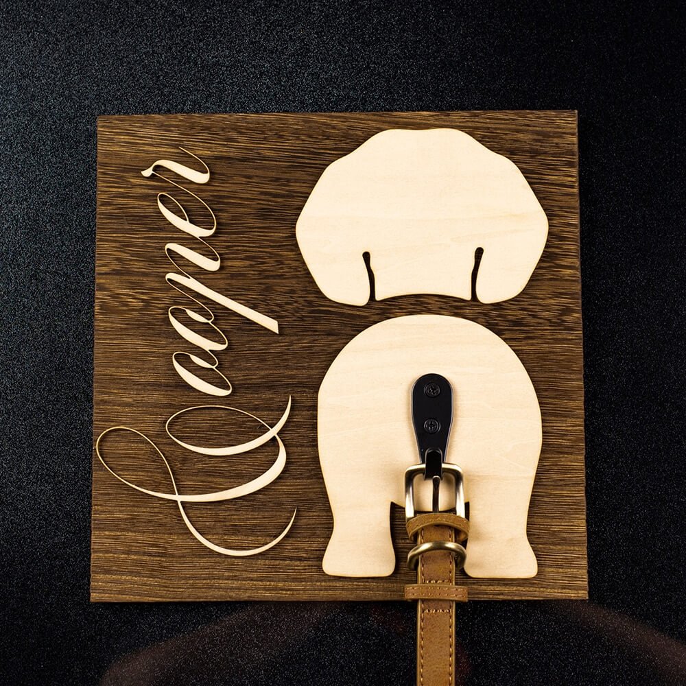 Once we receive the information, we will find the corresponding dog model to help engrave your dog’s name. All our dog leash hooks are hand-carved and created with love and affection. For us, every order is unique and therefore we pay special attention to details in order to deliver truly authentic and personalised wooden gifts to our clients.